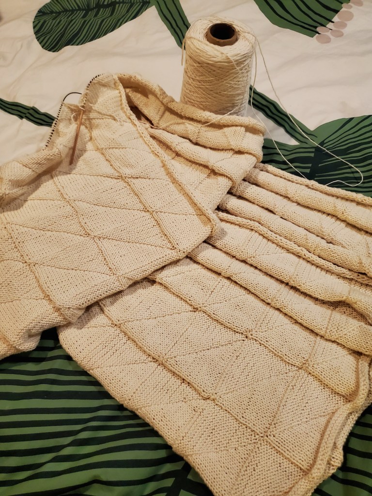 Thick books and intense knitting projects don’t intimidate me but knitting a blanket with tiny little stitches is a little nutty. This is the Purl Soho Embossed Triangles Blanket. I’m about 2/3 done at this point. I keep putting it down for a week or month before picking it back up, drawing out the whole thing. To makes this worse (or better!) I keep feeling like when it’s done, I might embroider some simple Scandinavian style geometric botanical stuff on there. Or is the simplicity better? My mother-in-law saw what I was knitting, and she said something like “you are making heirlooms that people will actually want.” What a nice compliment!